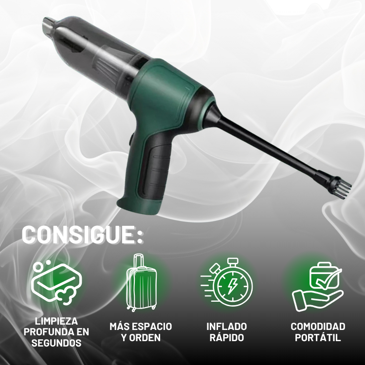 Una vez seleccionada la función, presiona el botón de encendido. Su potente motor se encarga del resto, aspirando con fuerza o inflando en segundos.